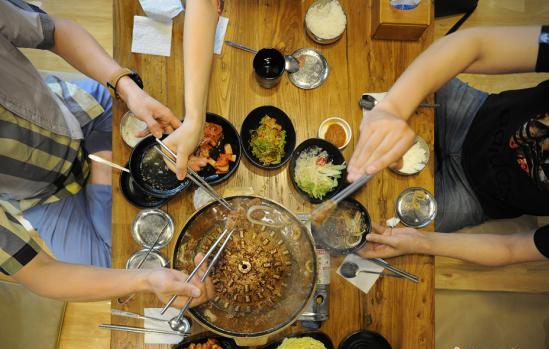 资料图:几个年轻人在一家韩餐厅内聚餐。