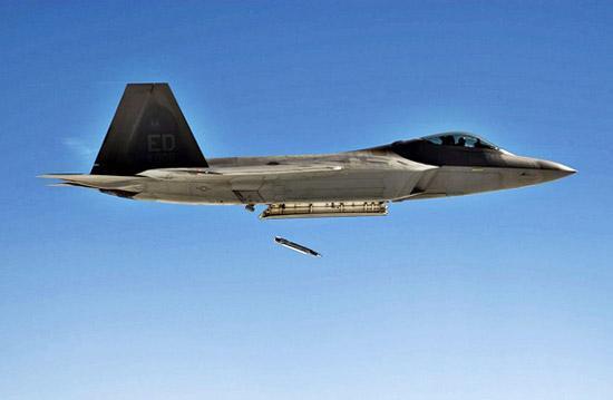 从某种意义上看,美国空军在发展F-22和F-35的时候,其思路与上一代的F-15和F-16有些类似,F-22主要担负争夺制空权的任务,而F-35则是作为一款多用途战斗机来设计,与上一代战斗机类似,F-22并没有坚持多久就拥有了对地攻击能力,并在反恐战争中有了实战经验,其主要对地攻击武器是卫星制导或者复合制导的SDB炸弹,由于对隐身能力的高度重视,F-22在设计的时候并没有设置光学窗口等,为了不破坏自己的隐身能力,F-22到目前为止也没有准备被赋予使用更精确地激光制导炸弹的能力。