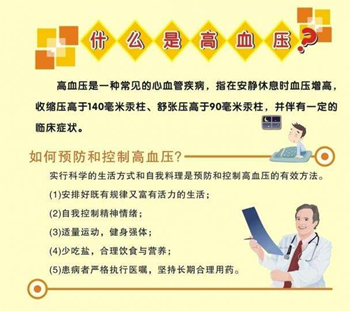 健康研究者潘用兵进一步指出,国内外经验已表明,控制高血压最有效的方法是社区防治。最好能实现50%的病人在基层诊断治疗,只有难治性高血压或并发症严重的患者才到大医院就医。大多数高血压病人其实不用去大医院排队抢号,每天自测血压、按量服药,就能平稳控制血压。新的医改方案中,高血压已和糖尿病一起纳入社区管理,但当务之急在于培养社区医生的诊疗水平。