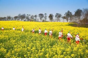每年高淳金花遍野时,总会吸引来自全国各地的摄影师和画家在这里采风、创作。今年是孙先生拍摄高淳金花节的第五年,听说开幕式当天有民俗表演,为了抓拍精彩的画面,他特意提前一天住到了附近的农家乐。当天威风舞狮、陈家打叉、桠溪女子旗鼓、腰鼓、跳五猖,这些高淳特色的民俗表演,依次在金花田中进行了巡游演出。在一片金黄的油菜花田中,身穿演出服的民俗表演队显得尤为突出,唢呐的撩亮、鼓声的振奋,让整个大地都跟着沸腾起来!把高淳当地的民俗文化特色淋漓尽致地展现在游客面前。据金花节主办方介绍,除了开幕式当天有民俗演出之外,在金花节期间,每周末都安排了不同的民俗文化“大餐”,如东坝大马灯、蚌蟹乐等。通过“旅游+文化”的融合,赋予金花旅游节更多文化价值,用文化的软实力给游客留下难忘的高淳印象。