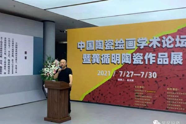 要回答以上问题,我们认为,从单个个体或群体或陶瓷作品,很难找到答案;从材料、从工艺,也难出令人信服的理由。我们必须从学术上、从理论上去构建,从哲学、甚至宗教层面去思考,而这些,正是我们陶瓷绘画创作领域最缺乏的东西。   为了让这次“中国陶瓷绘画学术论坛”赋有高效,赋有实质性效果。主办和承办方在策划这次学术论坛和作品展时,就考虑到这个问题。活动的总策划、总执行宁钢教授和吴昊先生在“中国陶瓷绘画学术论坛暨龚循明陶瓷作品展”开展前一星期,仍在反复商讨,最后决定把这次“中国陶瓷绘画学术论坛暨龚循明陶瓷作品展”办成学术展,通过学术带动作品的展览,力求探索中国陶瓷绘画领域陶瓷艺术品发展的新模式。“中国陶瓷绘画学术论坛暨龚循明陶瓷作品展”主、协办方确定,除了有外地大学、艺术团体、学术机构加入,当地两大高等学院,中国陶瓷博物馆均加入外,江西省各大艺术院院、艺术研究团队负责人全部应邀到场。这在中国陶瓷绘画界是少有的,说是一场盛会,一点不为过。“2021中国陶瓷绘画学术论坛暨龚循明陶瓷作品展”当天上午的学术活动,由景德镇陶瘊大学原校长陶瓷智库理事长宁钢教授主持。