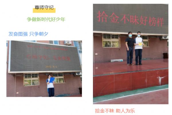 刘跃刚副校长为“圆梦2023榜样人物--拾金不昧好榜样"初三2班李君傲同学颁奖,表扬李君傲同学拾金不昧助人为乐的优秀品格,希望同学们向身边的榜样学习,让拾金不昧的精神在校园里开花,成为我们的骄傲,让中华传统美德继续发扬光大!