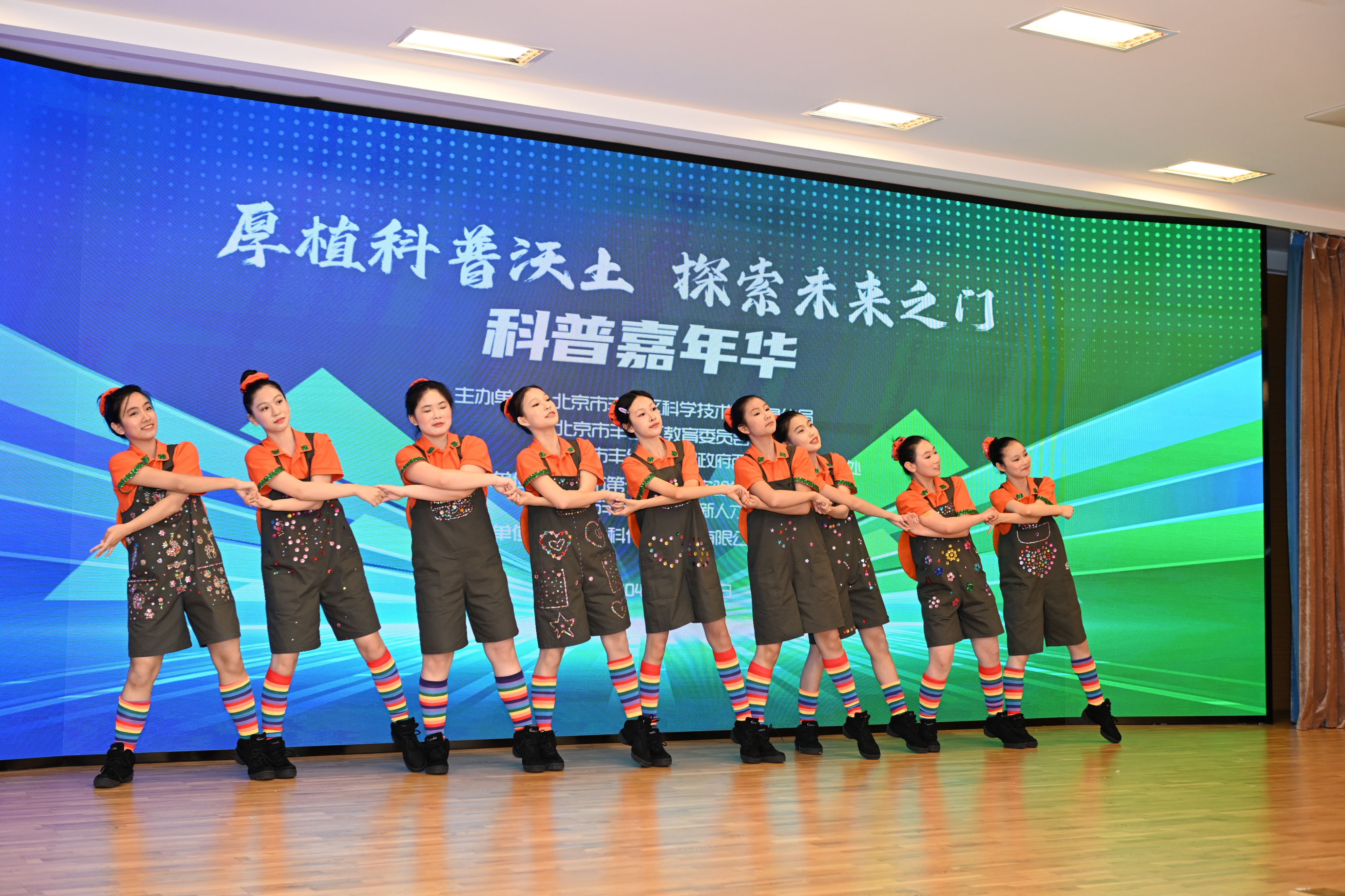 开幕式在“美美”舞蹈社团的精彩表演中拉开帷幕!一曲《筑梦丰台 美好未来》以灵动的舞姿与光影交织,展现了科技与艺术的完美融合。学生们用充满力量的肢体语言,诠释了丰台学子对未来的无限憧憬,瞬间点燃全场热情!