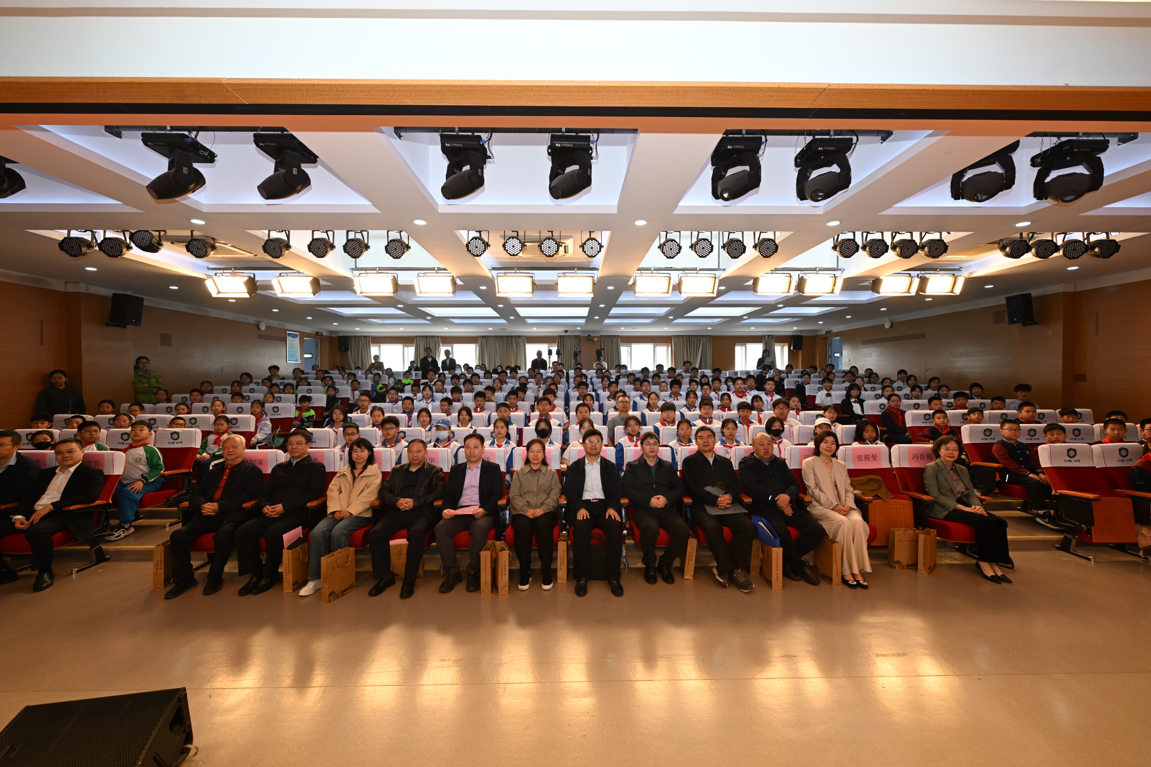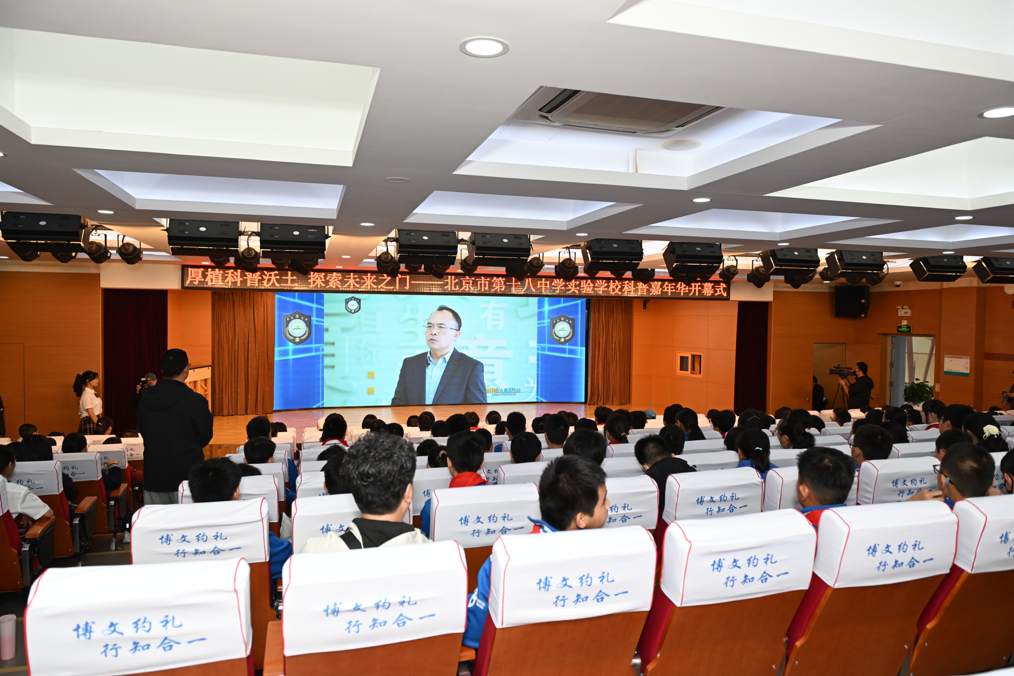 在全场热烈的倒计时声中,与会领导共同按下启动按钮。随着大屏幕上“厚植科普沃土 探索未来之门”的金色大字璀璨点亮,科普嘉年华正式拉开帷幕。这一刻,不仅标志着本次活动的开始,更象征着学校科技教育新征程的开启。