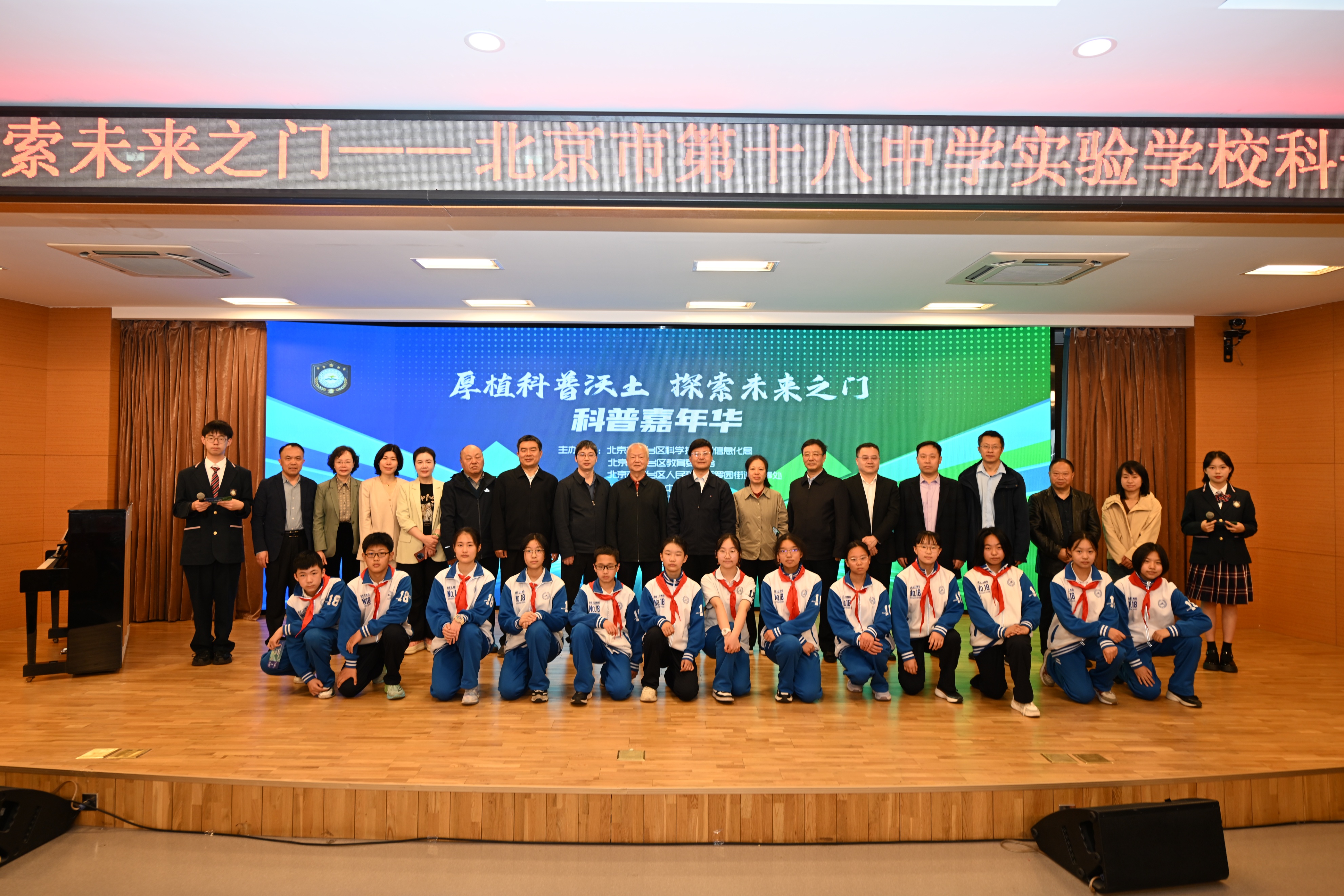 在春意盎然的美好时节,北京市第十八中学实验学校迎来了一场科技与教育交融的盛会。4月19日上午,以“厚植科普沃土 探索未来之门”为主题的科普嘉年华开幕式在学校隆重举行。这是一场集科技展示、教育研讨、创新实践于一体的综合性活动,标志着北京市第十八中学实验学校在科技教育领域又迈出了坚实的一步。
