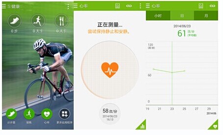 除了计步器、热量等数据监测,全新S健康还拥有心率监测器功能,将自己的手指放上在后置摄像头下的监测器,心率监测器会测出用户血管中的红细胞流动速率,并测算出用户每分钟的脉搏数和心跳数。用户可以据此追踪自己健康和运动的状况,并制定相应的运动健身计划。