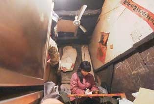 12日晚,记者沿着带着积雪的崎岖土路走了15分钟找到了小窝棚。这个“家”没有砖瓦顶、水泥墙,由两层塑料薄膜和木头搭起的架子组成,一扇破旧的 木门虚掩着,灯光微弱地透出来。屋里的温度大概10多摄氏度,穿着陈旧的黄色大棉袄,圆圆的笑脸是张临娥给记者的第一印象。“这就是我的闺房。”记者看到 的是一张窄窄的小炕,上面堆着棉被,旁边挂着七七八八的生活用品,一个大书包里装满了复习资料,还有一张如翻开的杂志大小的书桌。两只猫从炕上跳下跑走, “它们是我的好朋友,晚上抱在一起可以互相取暖。”一张帘拉开,另一侧是张临娥父母住的地方。