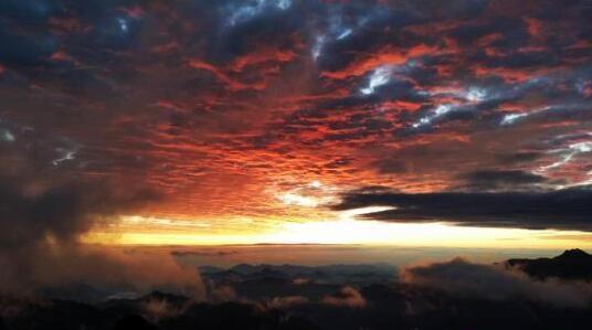 四川二郎山现火烧云日出景观 美到窒息