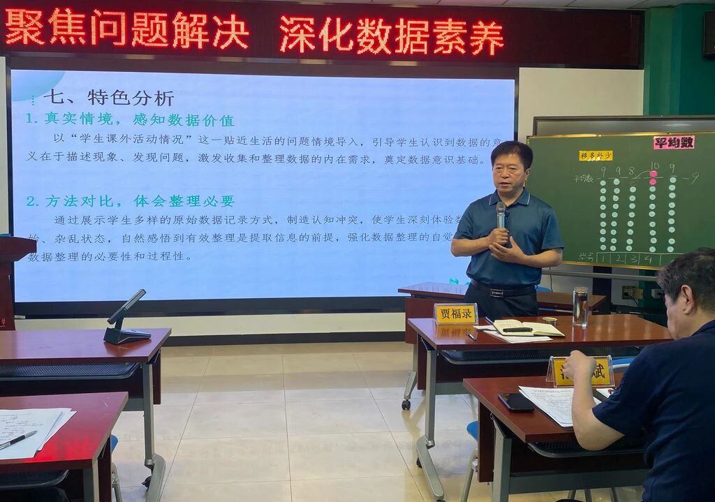 本次活动的主题是:基于问题解决的数据整理与表达。通过课例展示、单元教学汇报、专家点评等环节,深度剖析利用问题解决的路径培养学生数据意识与应用意识的有效方法,为学校数学学科发展注入专业力量。活动由教务处彭程主任主持。