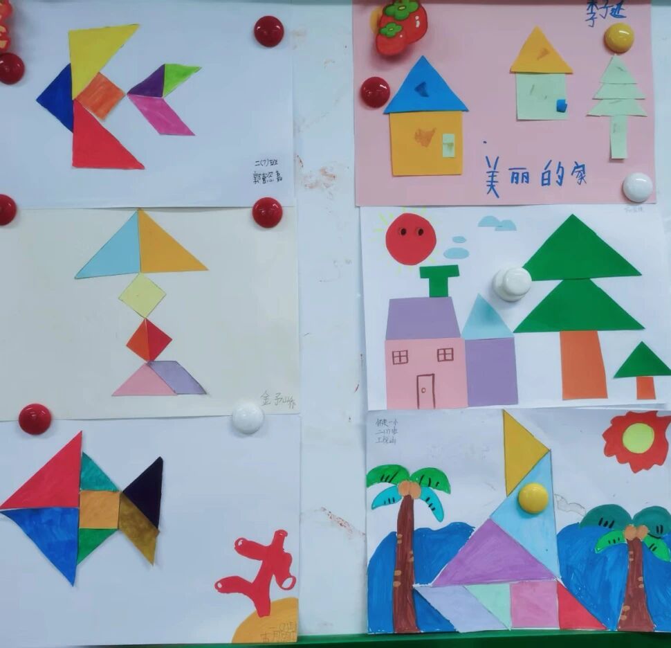 当数学知识走出课本,便焕发出无穷的生活魅力。孩子们用数学点亮创意,用实践探索真知。从一年级的七巧板拼贴到五年级的立体建筑模型,各年级同学结合所学知识,动手创作出了丰富多彩的数学实践作品。他们设计作息表、会徽、统计图,甚至用铁丝围图形、用纸盒建模型——在玩中学,在做中思,不仅巩固了知识,更锻炼了空间想象、数据分析、逻辑推理和问题解决能力。每一份作品都是数学核心素养的生动体现,让我们看到数学之美,就在手中、在身边、在生活里!