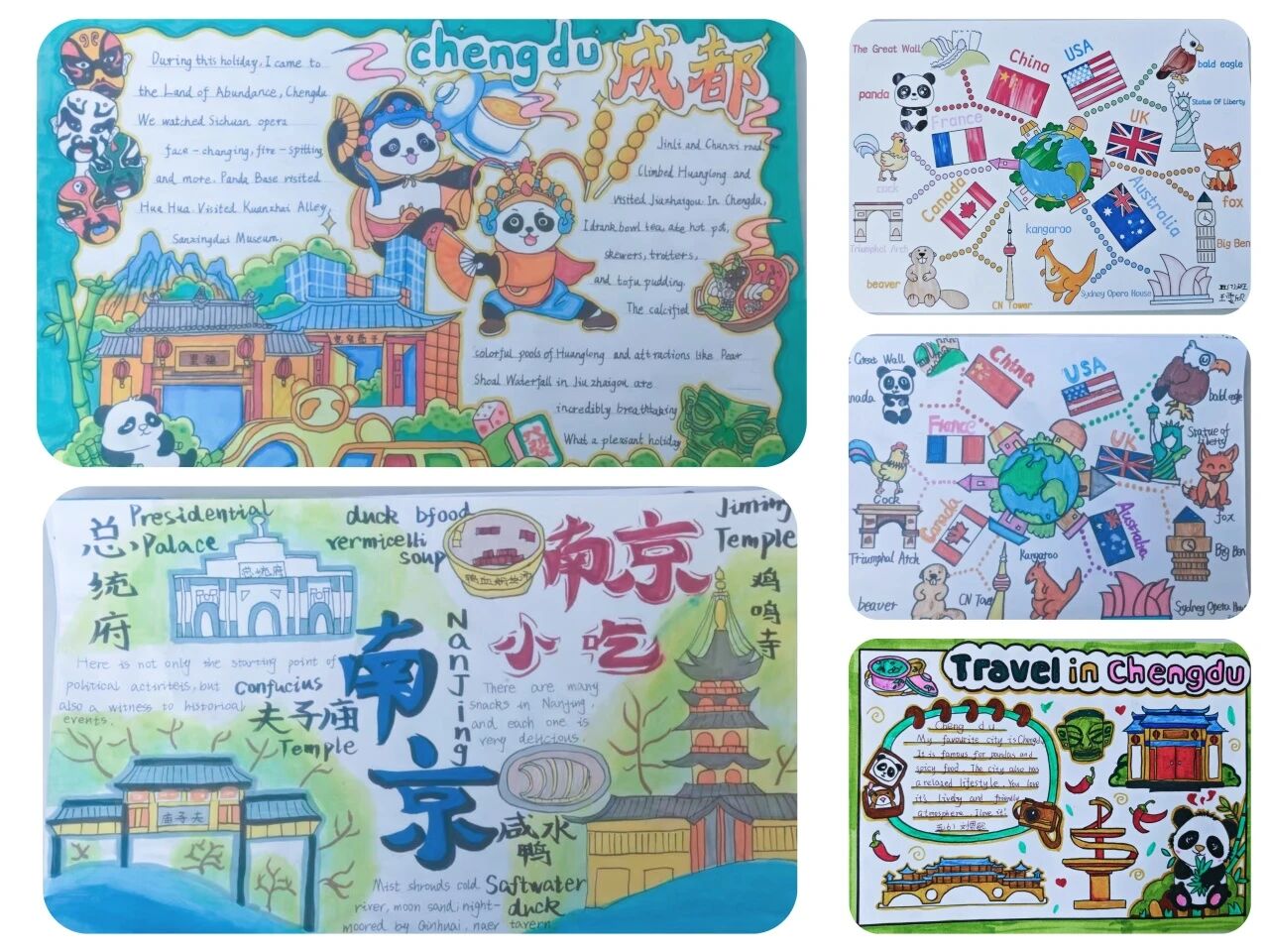 英语暑期作业展为我们呈现了一场充满创意与活力的学习盛宴。同学们的作品精彩纷呈:精致的手抄报和翻翻书,体现了对英语知识的梳理与艺术表达;活泼的英语歌谣演唱,展现了语言的节奏之美与自信风采;清晰的思维导图,见证了逻辑思维与语言能力的有效融合;而丰富多彩的暑期生活记录,更让我们感受到将英语融入实际生活的努力与乐趣。愿同学们继续保持这份对英语的热爱,在更广阔的世界中勇敢表达、快乐成长!