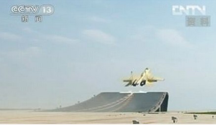 据记者了解到,航母滑跃起飞的飞行甲板是在陆地上建起的一个与航母甲板完全一致的训练设施,舰载机飞行员在正式着舰前必须在这里经受各项严格的训练。