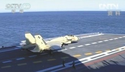 航母舰载战斗机在辽宁舰上训练起降。央视截图